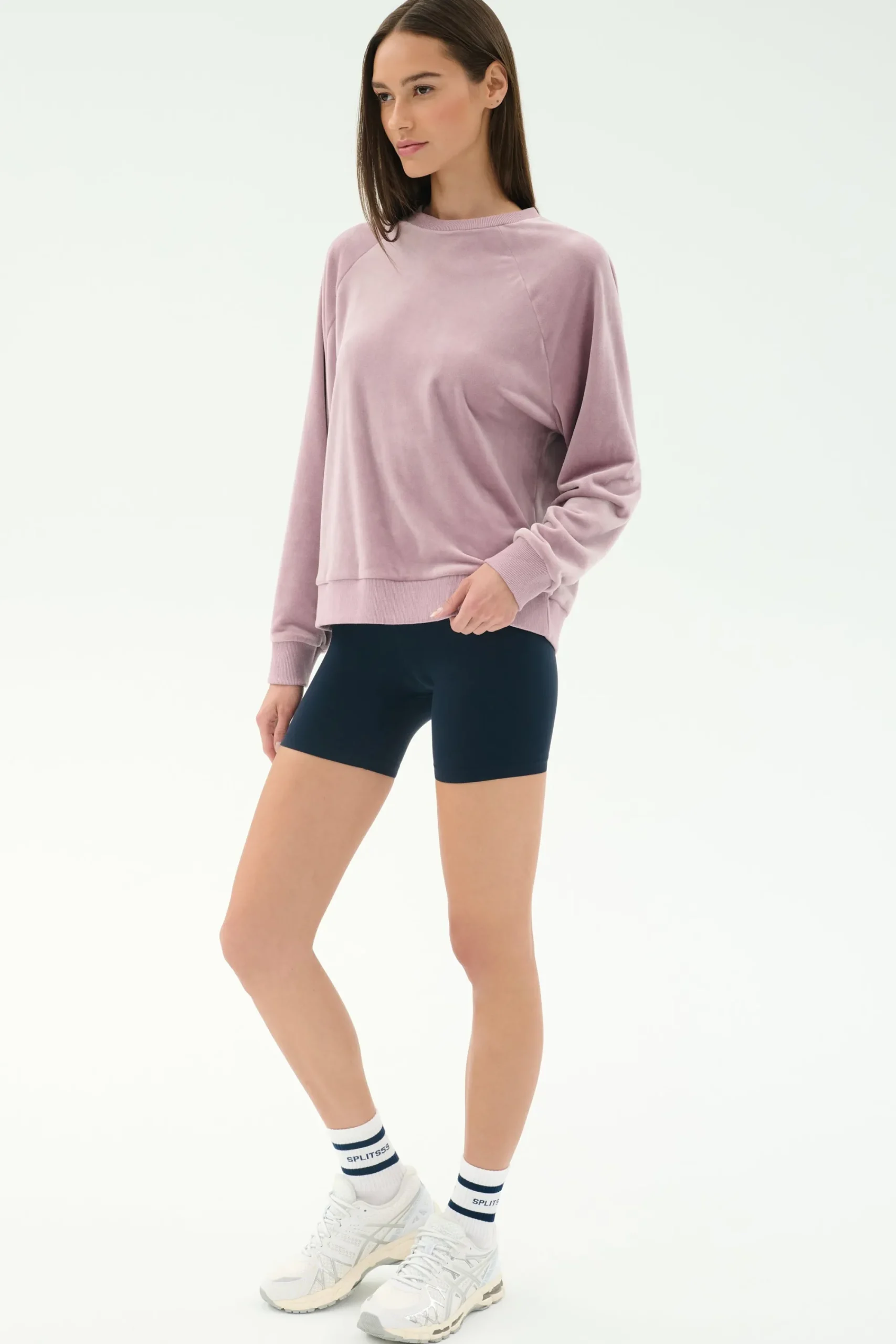 A relaxed crewneck in our luxe velour fabric that will make the perfect top with your active set.