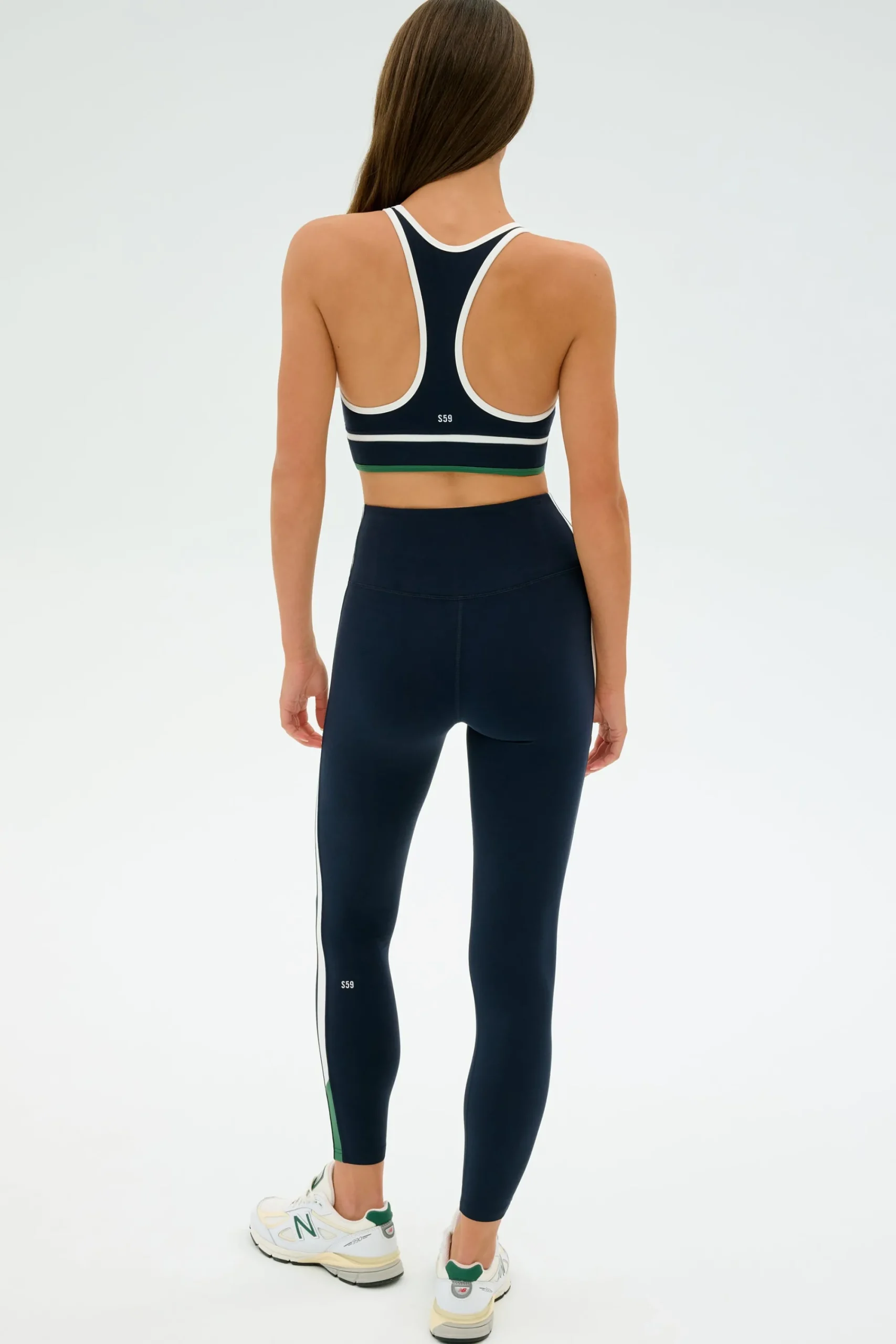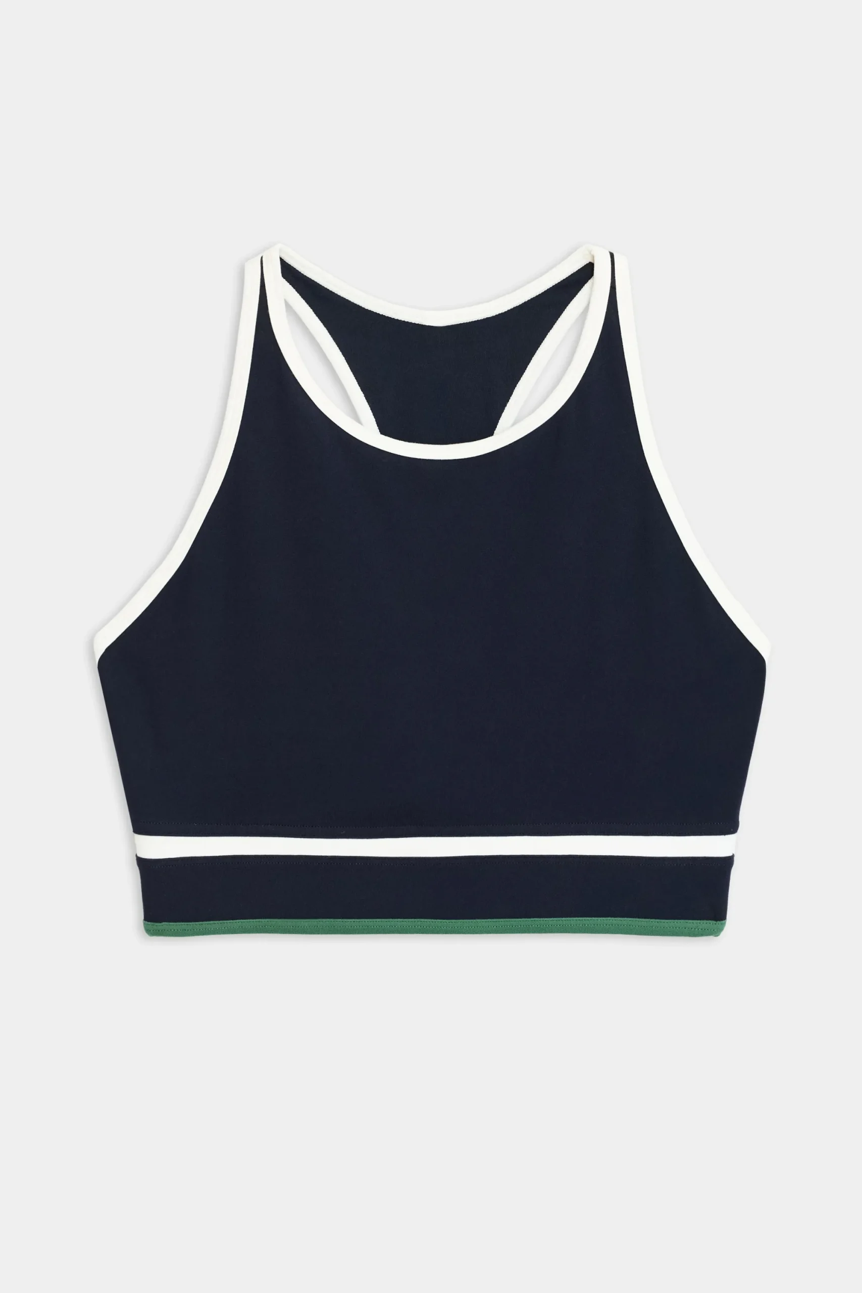 A new addition to our Airweight collection. High neck racerback bra with contrast trim and striped detail. Ultra luxe Airweight is feather light and buttery soft on your skin. Complete the look with the matching Layla Airweight High Waist 7/8 Legging.