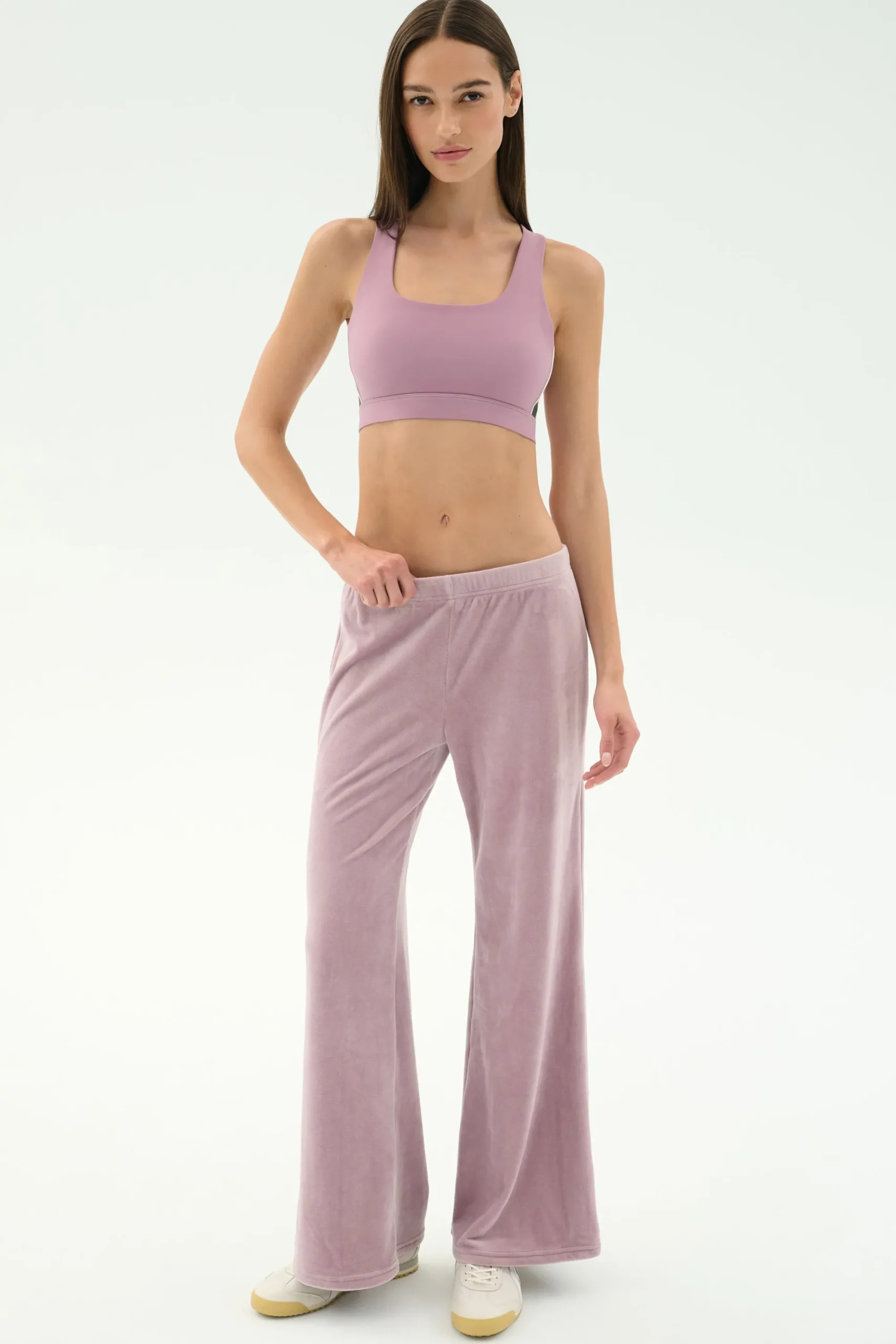 A flattering wide leg pant in our luxe velour fabric that hits right at the ankle.